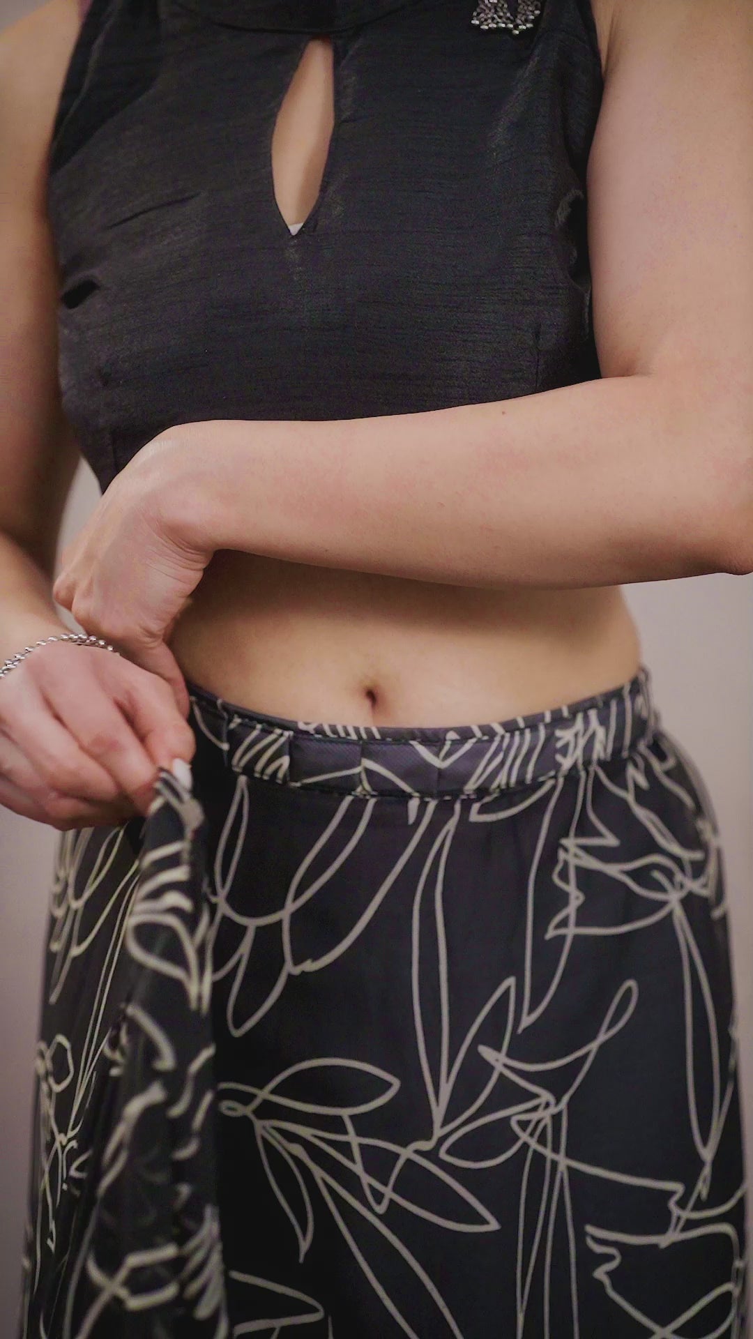 • Details: This sophisticated black ready-made saree is beautifully highlighted with floral prints, exuding effortless charm and contemporary elegance.