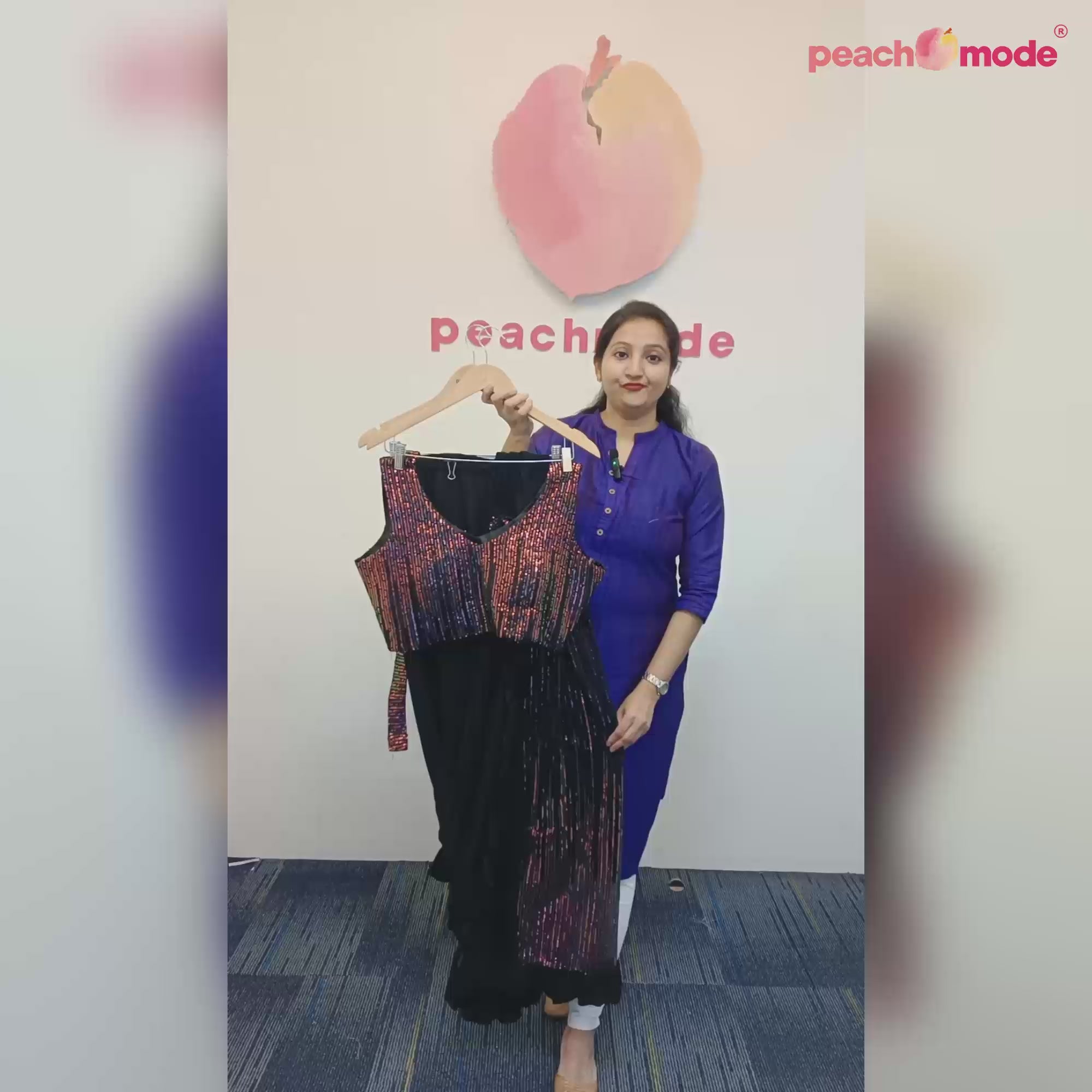 Black Partywear Frill & Sequins Art Silk Ready to Wear Saree