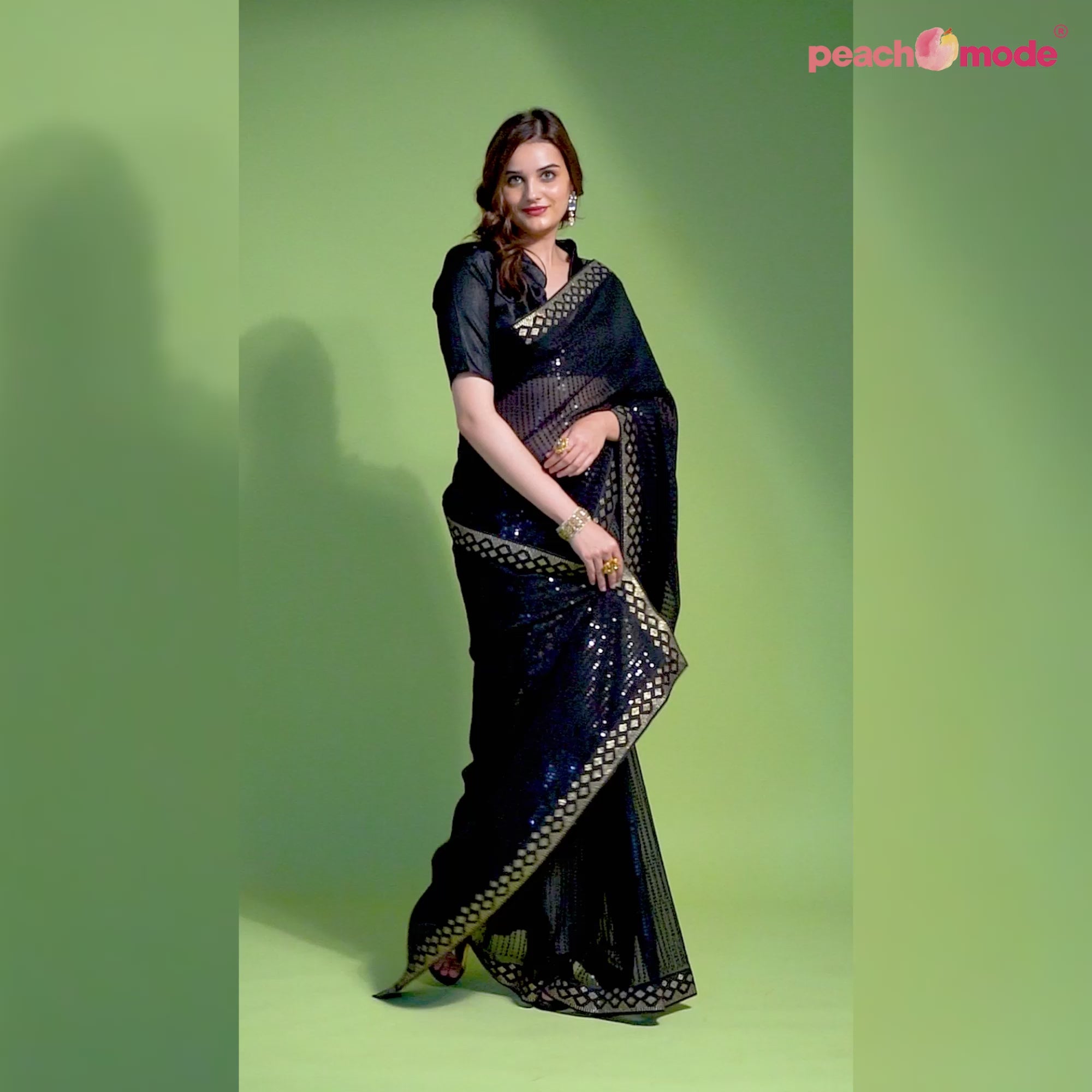 Black Sequins Embroidered Georgette Saree