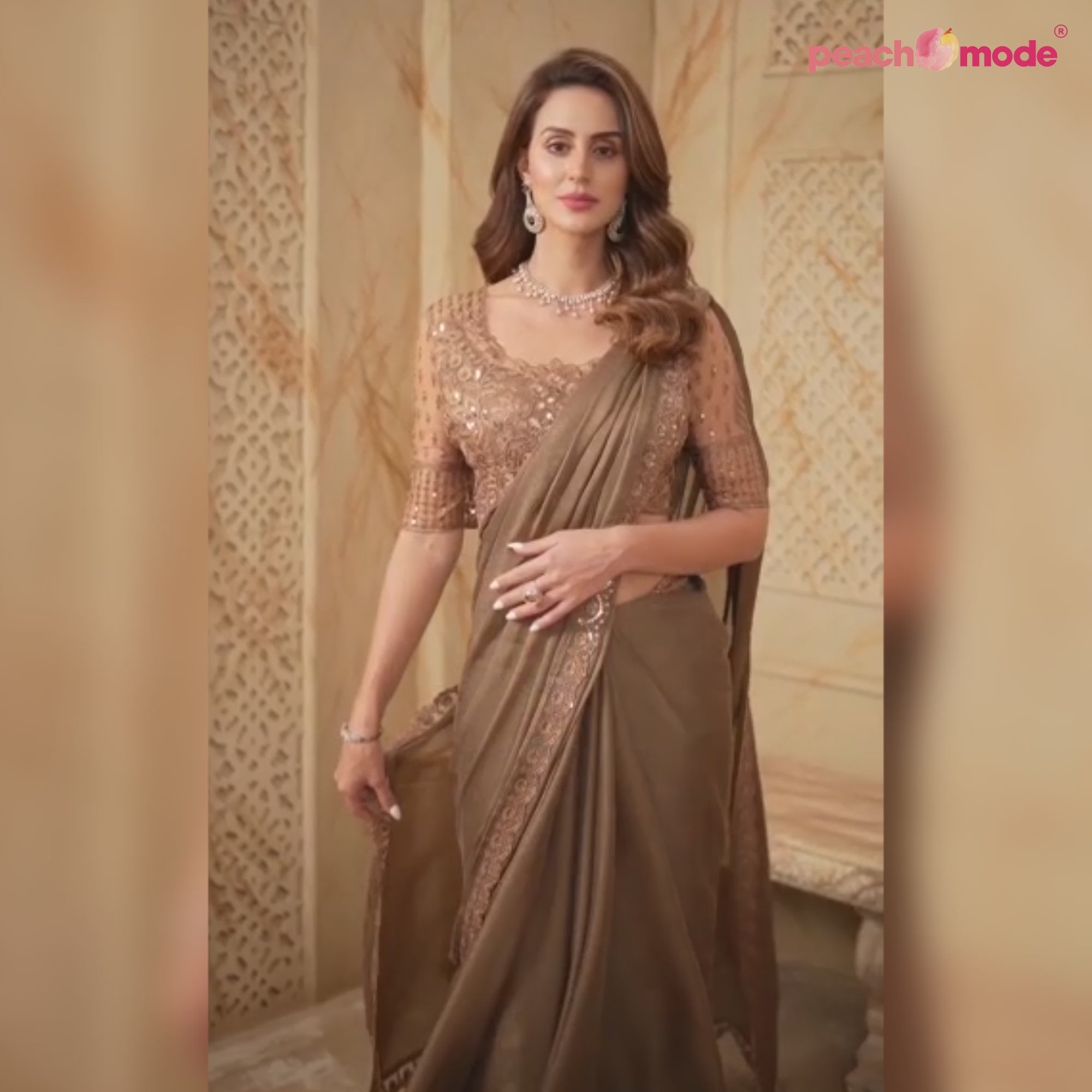 Brown colored saree is made from satin silk fabric which is highlighted with beautiful floral embroidered work as shown. comes along unstitched embroidered banglori silk and netted blouse which you can customise as per your design/style. Occasion - You can wear this saree for parties, functions, events and ideal for any fashionista. Note:- The actual product may differ slightly in color and design from the one illustrated in the images when compared with computer or mobile screen.