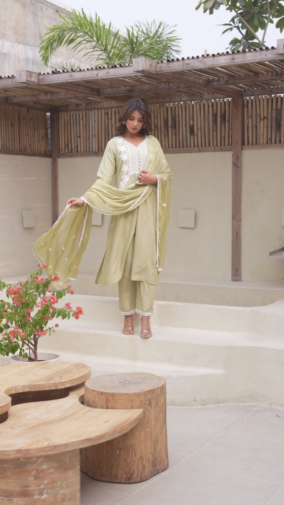 Light Chikoo Floral Embroidered Rayon Salwar Suit