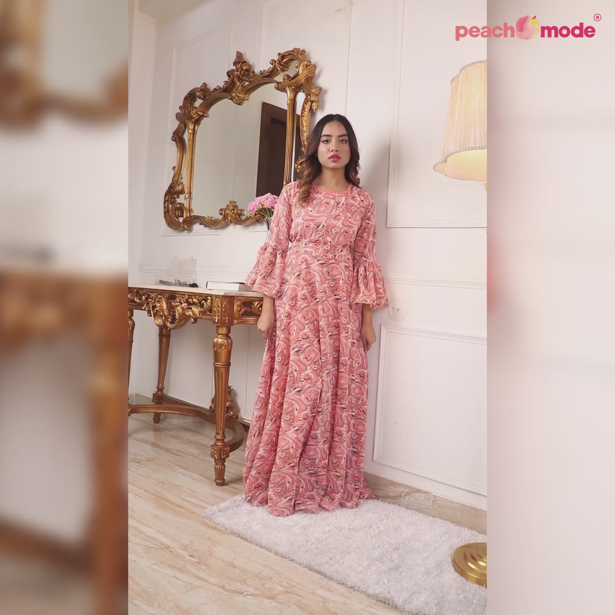 Peach Printed Georgette Gown