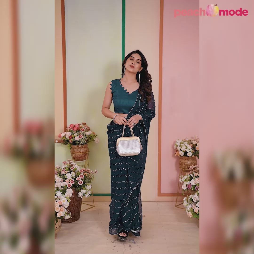 Teal colored saree is made from georgette fabric which is highlighted with patola print as shown. Comes along with unstitched banglori silk blouse piece which you can customize as per your design/style. Occasion - You can wear this saree for party and others.