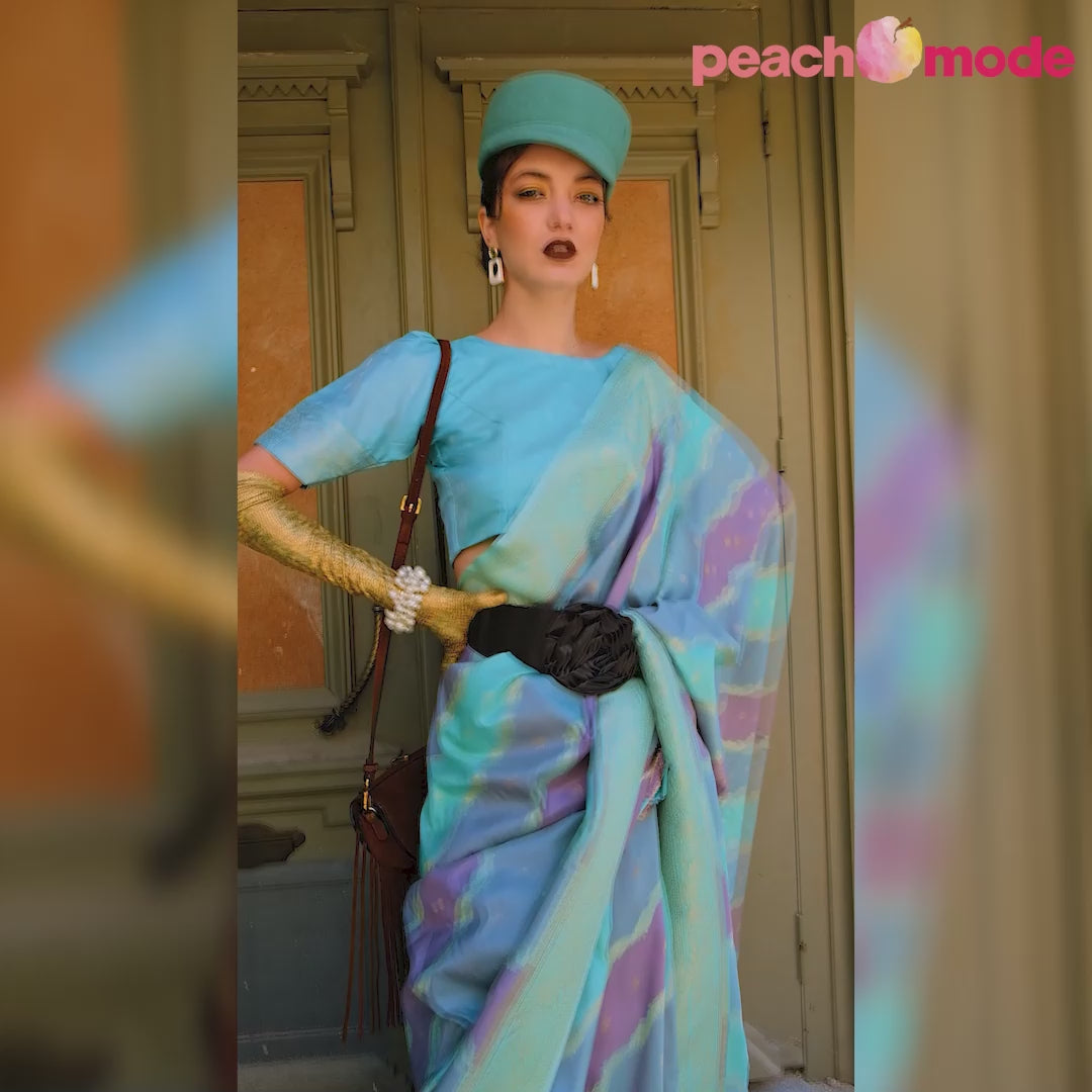 Turquoise Zari Work Woven Mulberry Silk Saree