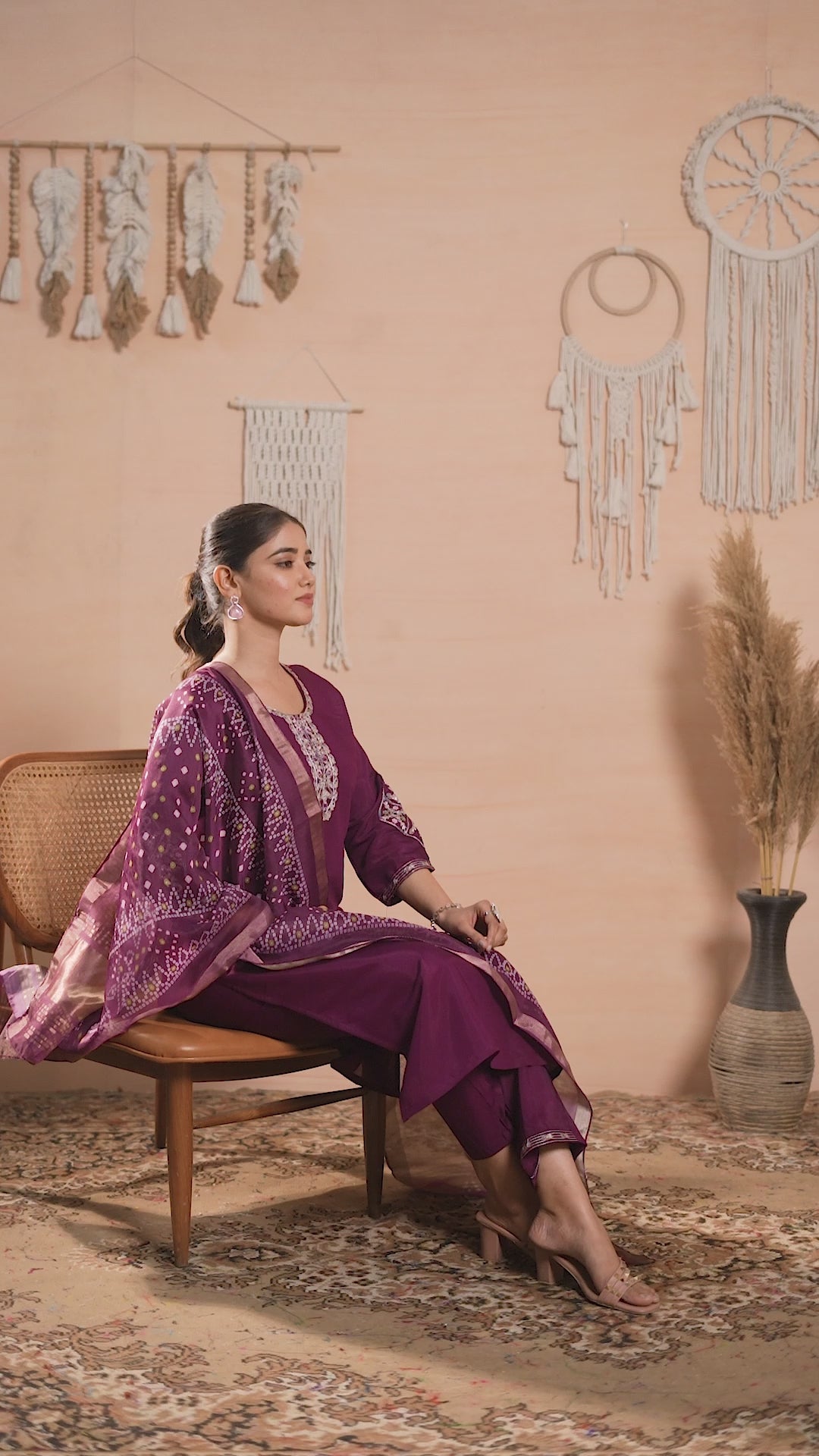 Wine Neck Embroidered Viscose Straight Salwar Suit