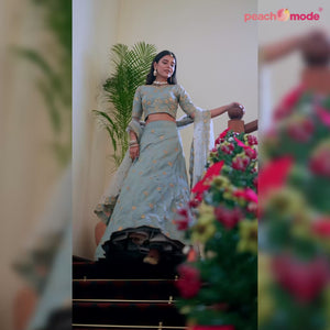 Grey Sequins Embroidered Art Silk Lehenga Choli |